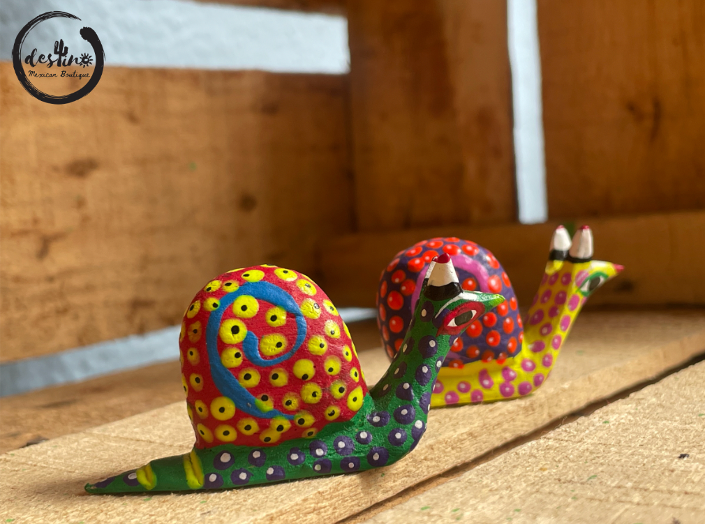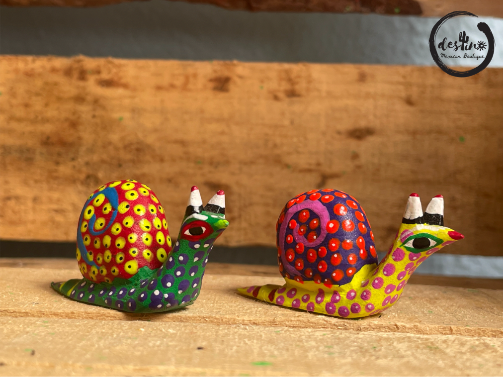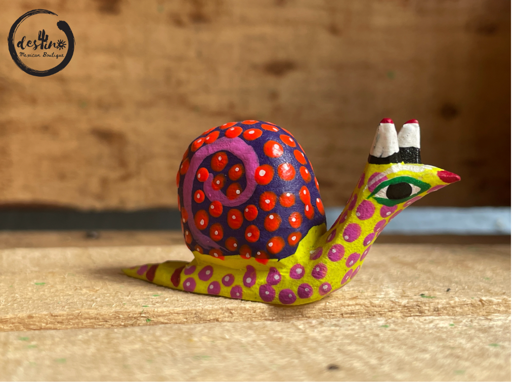 One of a kind hand carved wooden figures done by Mexican Artisans. All alebrijes are hand carved using copal wood which is the region’s natural resource. Each piece is polished and hand painted with acrylic paint by the Melchor family in Oaxaca de Juárez, Oaxaca, México.