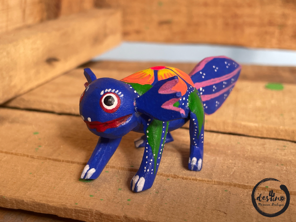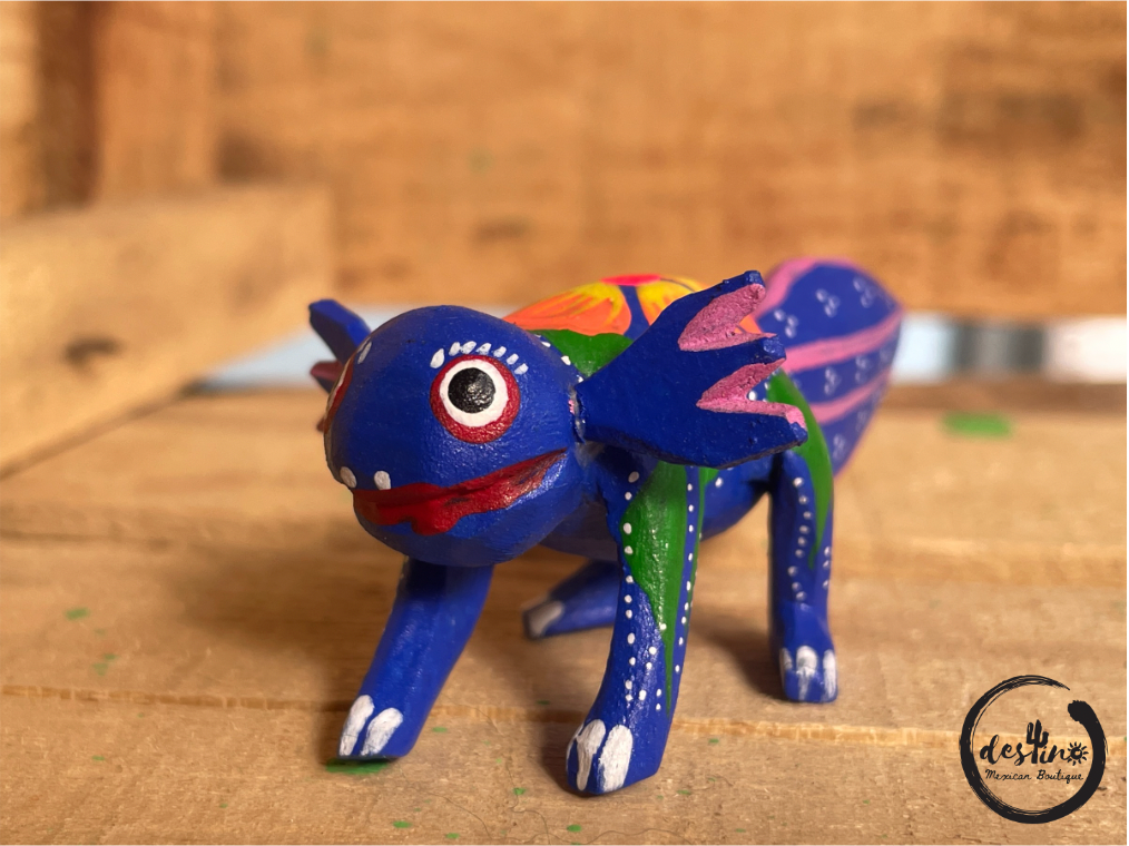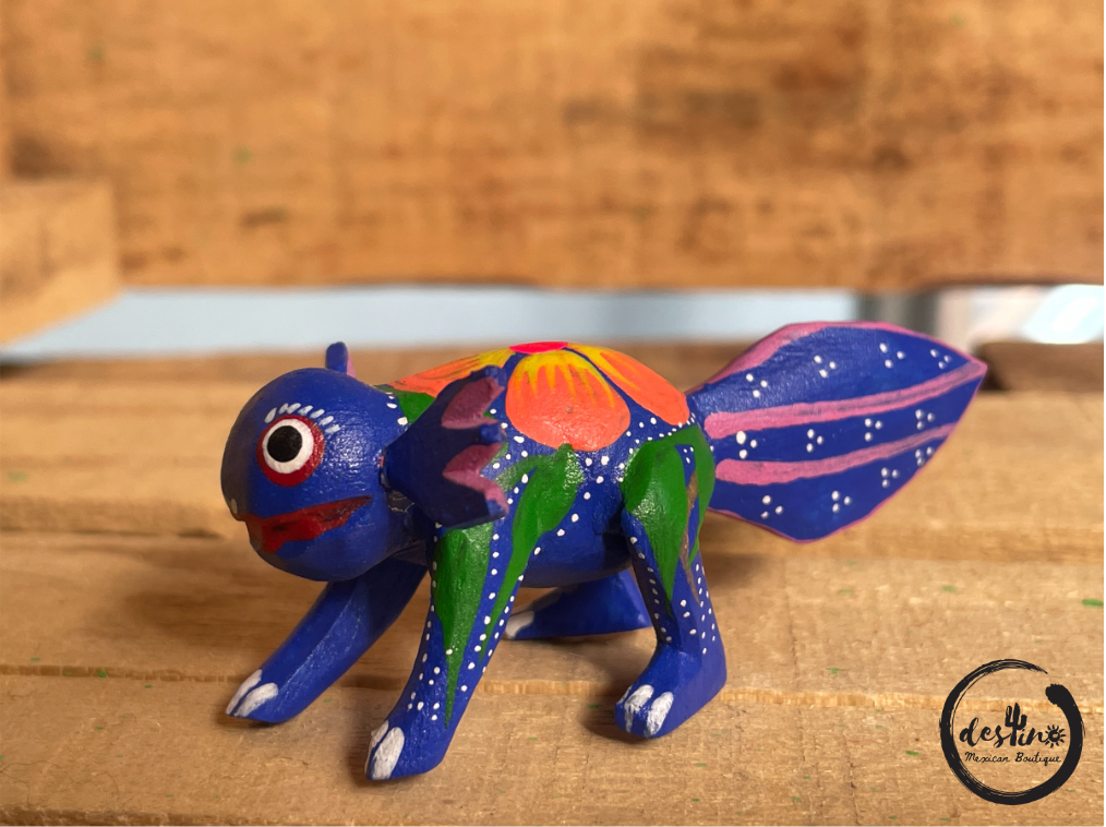 One of a kind hand carved wooden figures done by Mexican Artisans. All alebrijes are hand carved using copal wood which is the region’s natural resource. Each piece is polished and hand painted with acrylic paint by the Melchor family in Oaxaca de Juárez, Oaxaca, México.