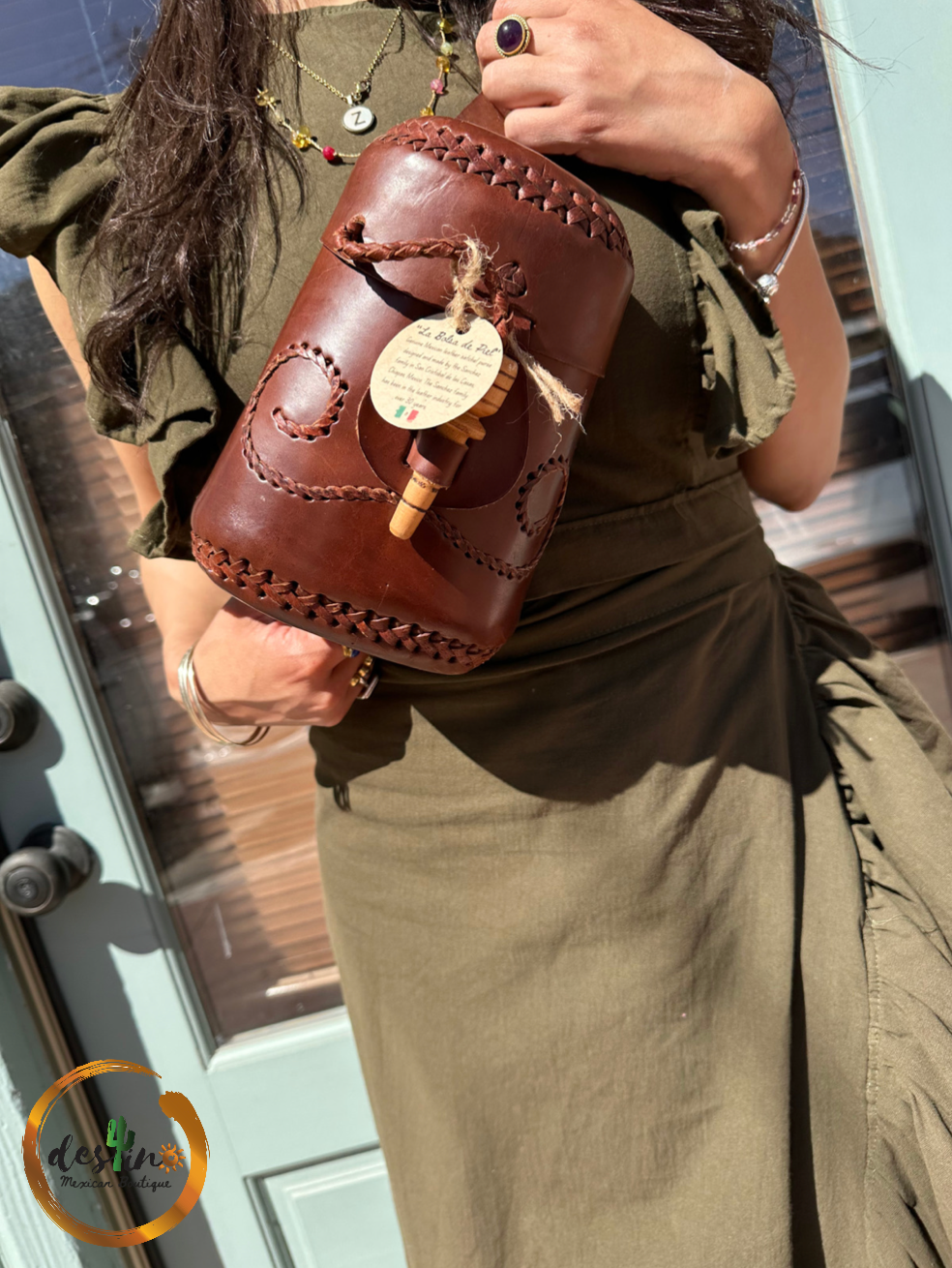 Genuine Mexican leather satchel purse designed and made by the Sanchez family in San Cristobal de las Casas, Chiapas,