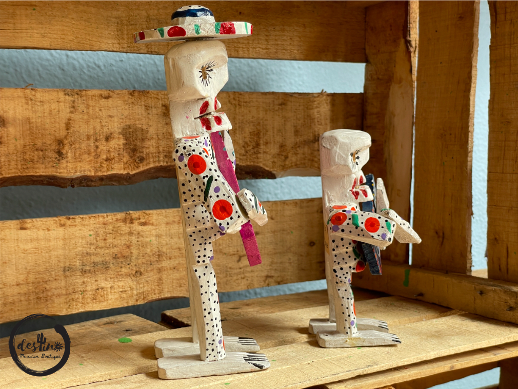 One of a kind hand carved wooden figures. Each piece is polished and hand painted with acrylic paint by Apolonio in San Cristobal de las Casas, Chiapas, México.
