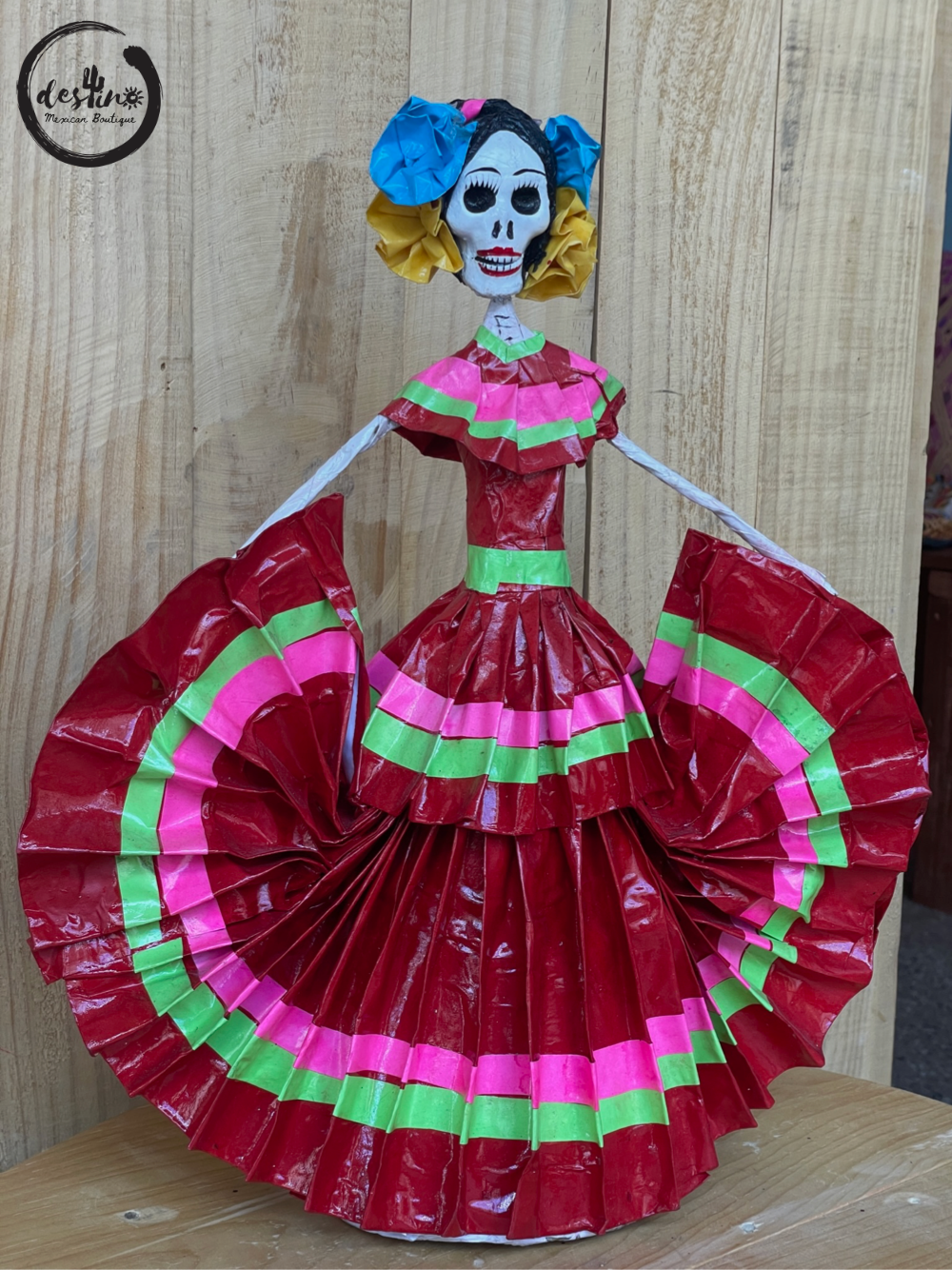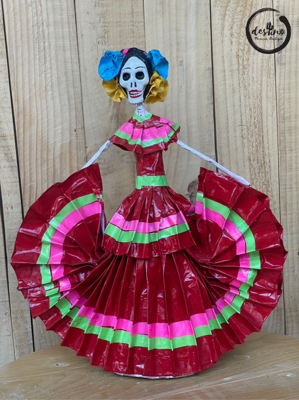 Mexican Catrina 100% handmade with recycled materials. Catrinas represent the beauty of a soul after death. Each Catrina is one of a kind made with love in Tonalá, Jalisco, México.