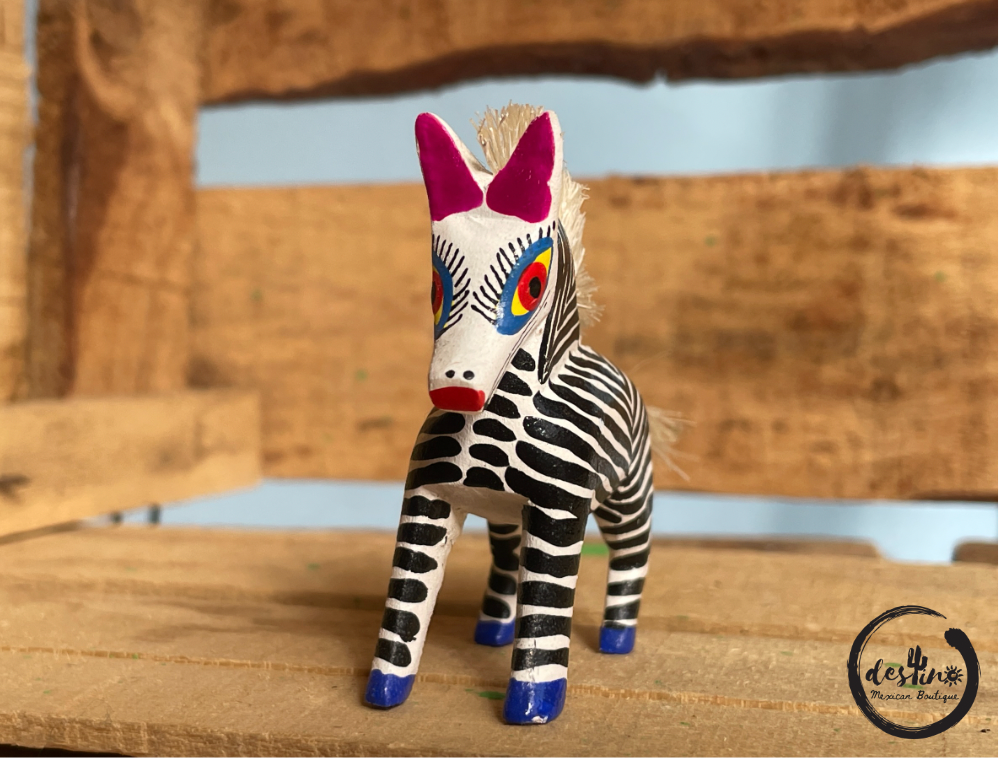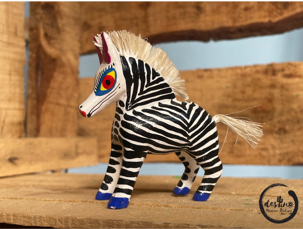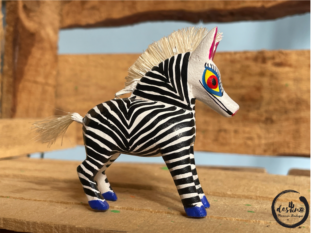 One of a kind hand carved wooden figures done by Mexican Artisans. All alebrijes are hand carved using copal wood which is the region’s natural resource. Each piece is polished and hand painted with acrylic paint by the Melchor family in Oaxaca de Juárez, Oaxaca, México.