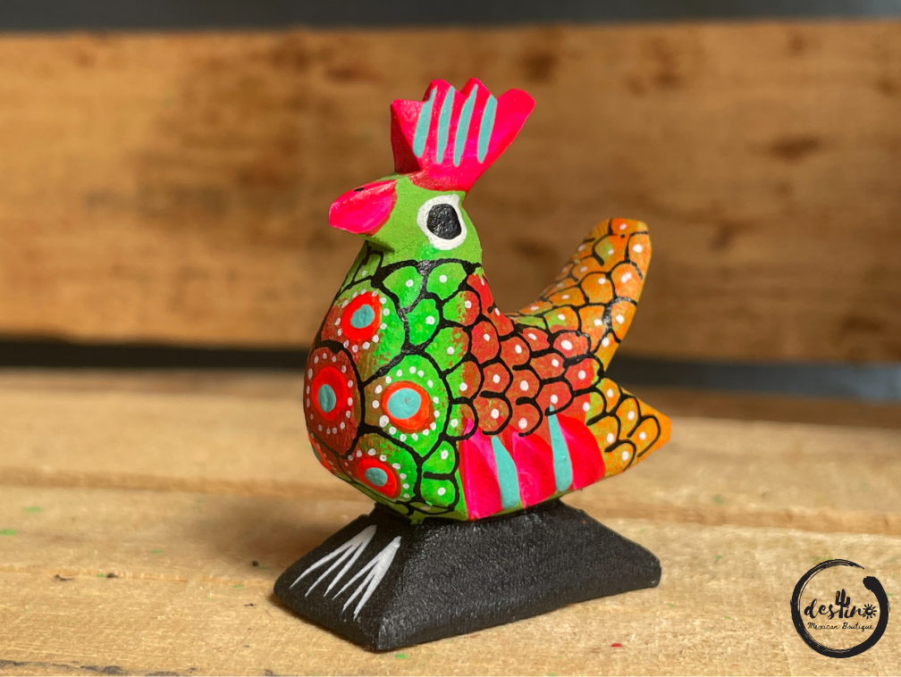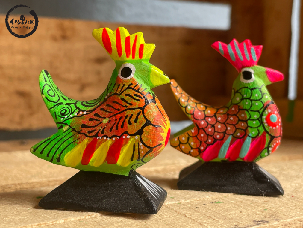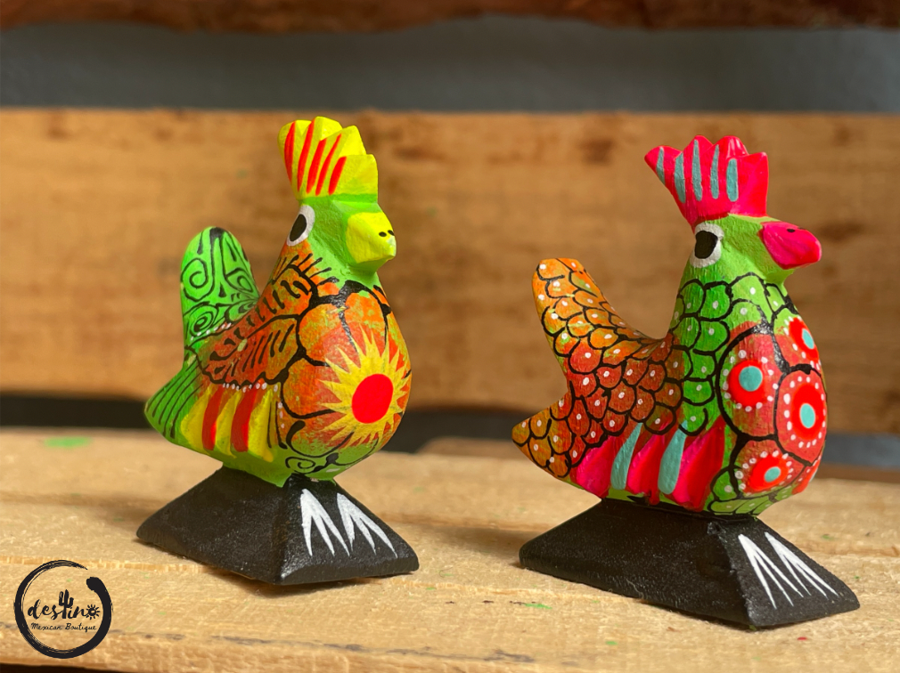 One of a kind hand carved wooden figures done by Mexican Artisans. All alebrijes are hand carved using copal wood which is the region’s natural resource. Each piece is polished and hand painted with acrylic paint by the Melchor family in Oaxaca de Juárez, Oaxaca, México.
