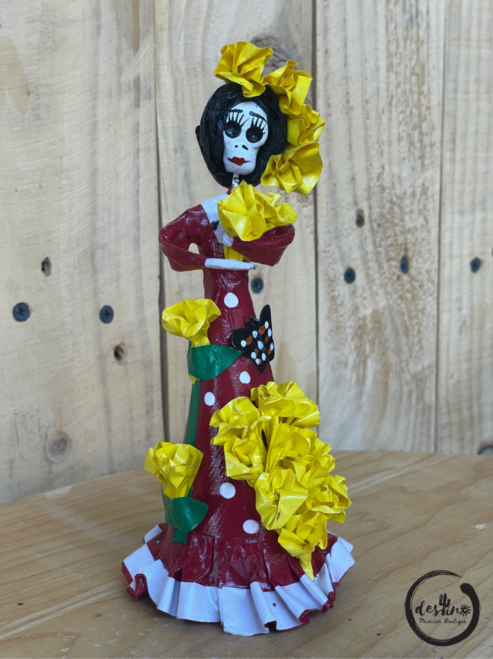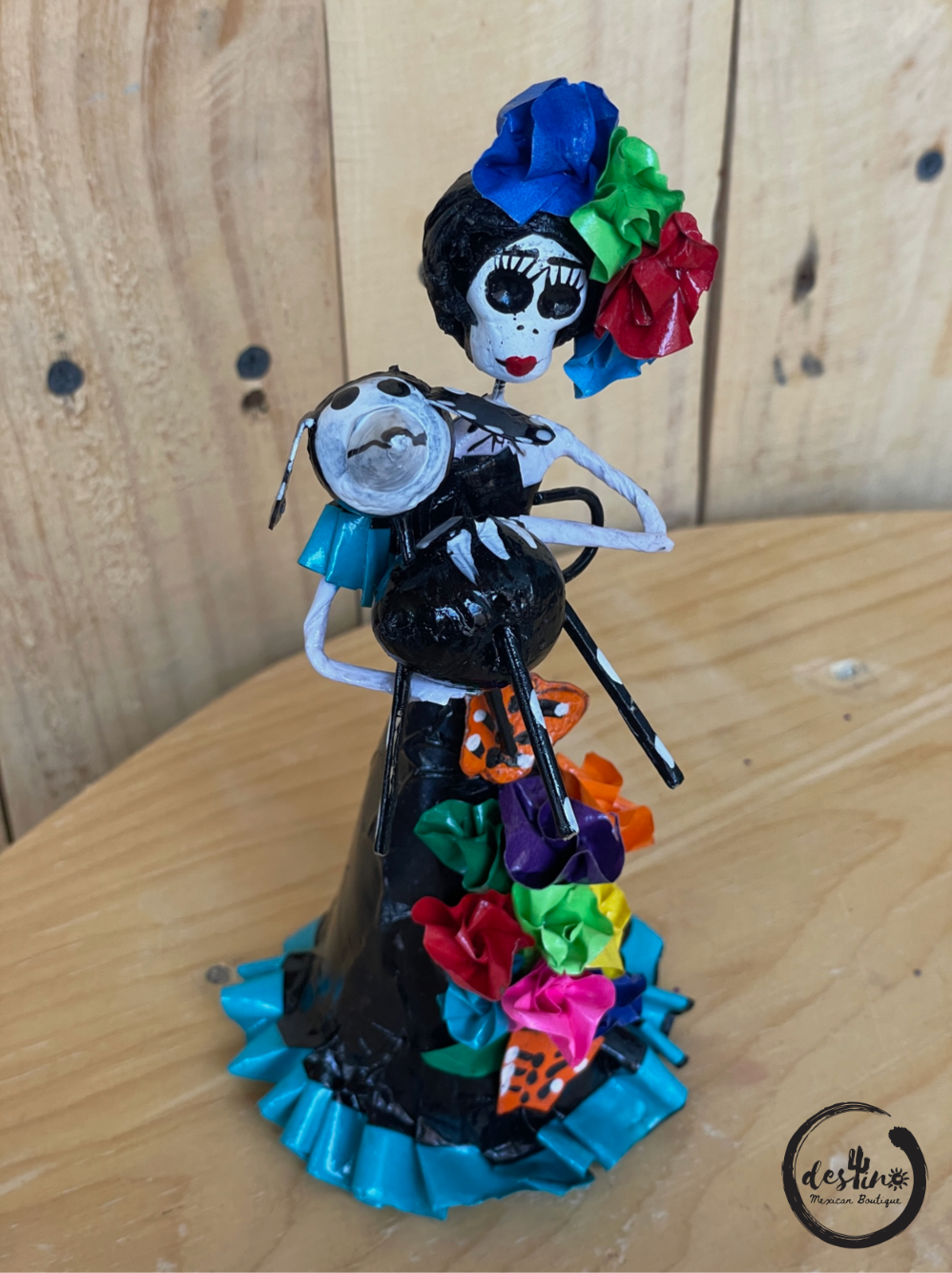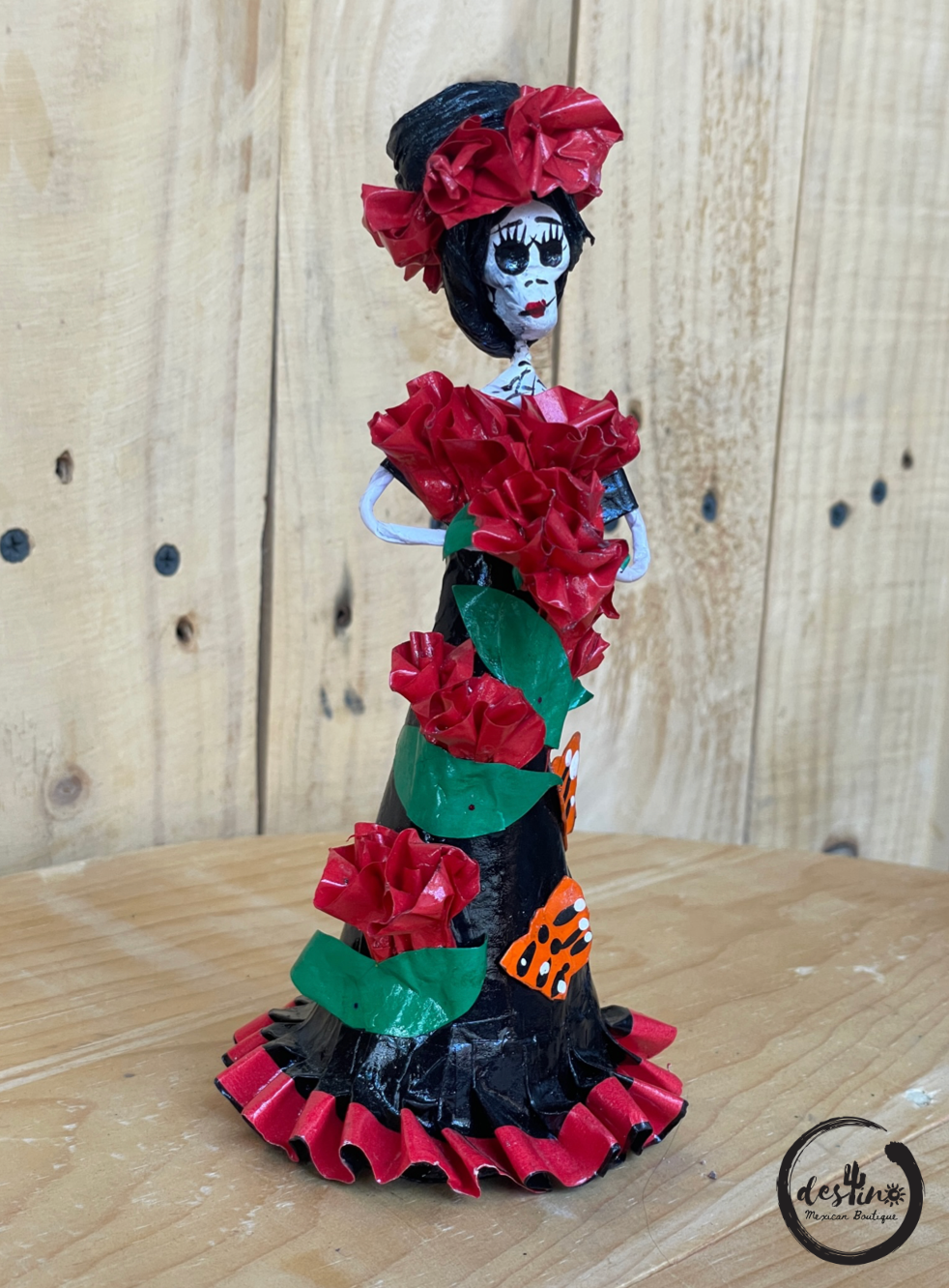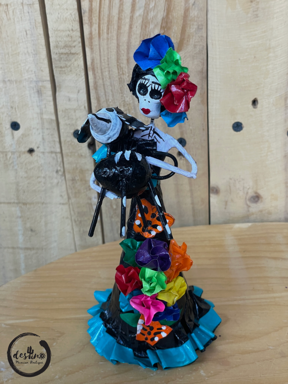Mexican Catrina 100% handmade with recycled materials. Catrinas represent the beauty of a soul after death. Each Catrina is one of a kind made with love in Tonalá, Jalisco, México.
