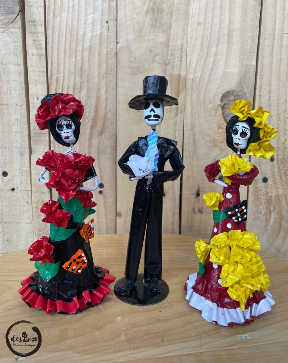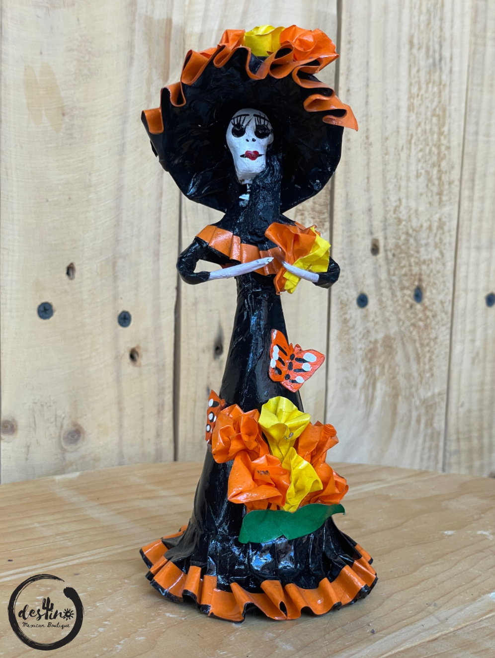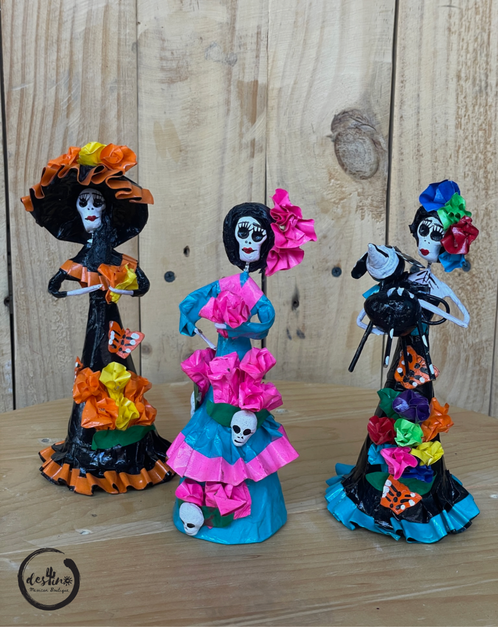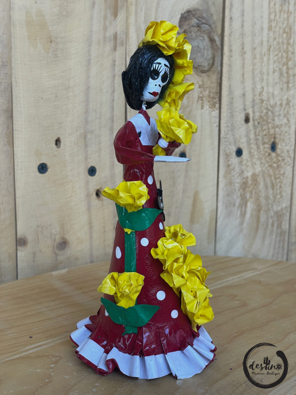 Mexican Catrina 100% handmade with recycled materials. Catrinas represent the beauty of a soul after death. Each Catrina is one of a kind made with love in Tonalá, Jalisco, México.