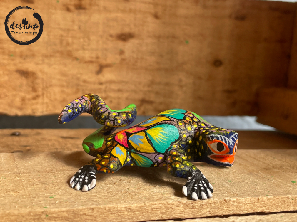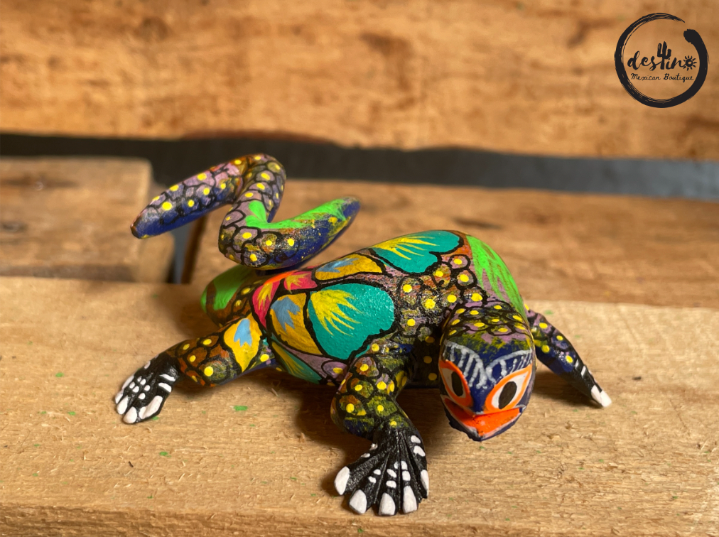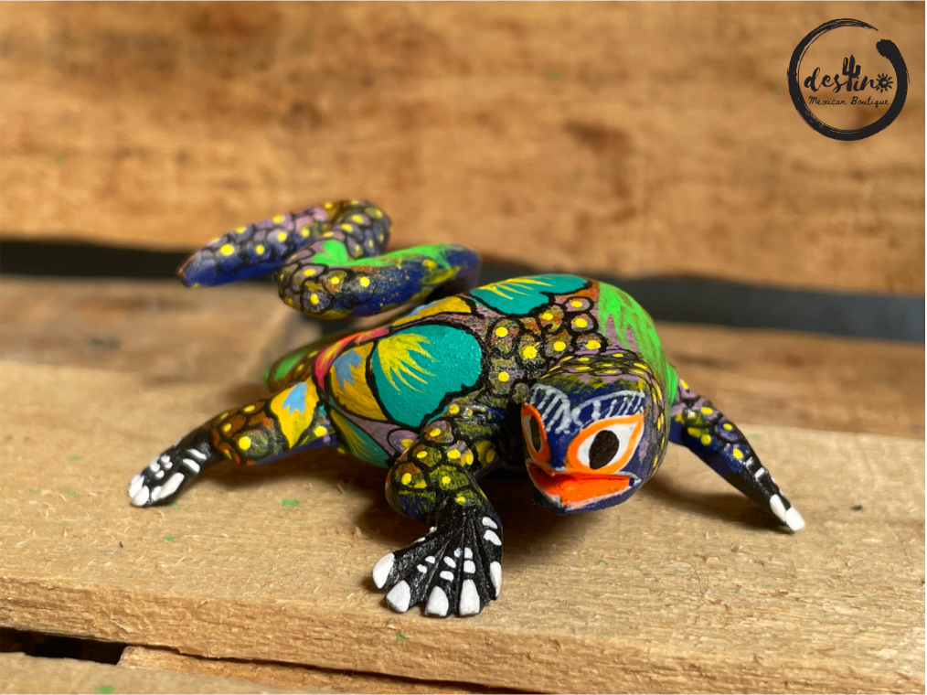 One of a kind hand carved wooden figures done by Mexican Artisans. All alebrijes are hand carved using copal wood which is the region’s natural resource. Each piece is polished and hand painted with acrylic paint by the Melchor family in Oaxaca de Juárez, Oaxaca, México.