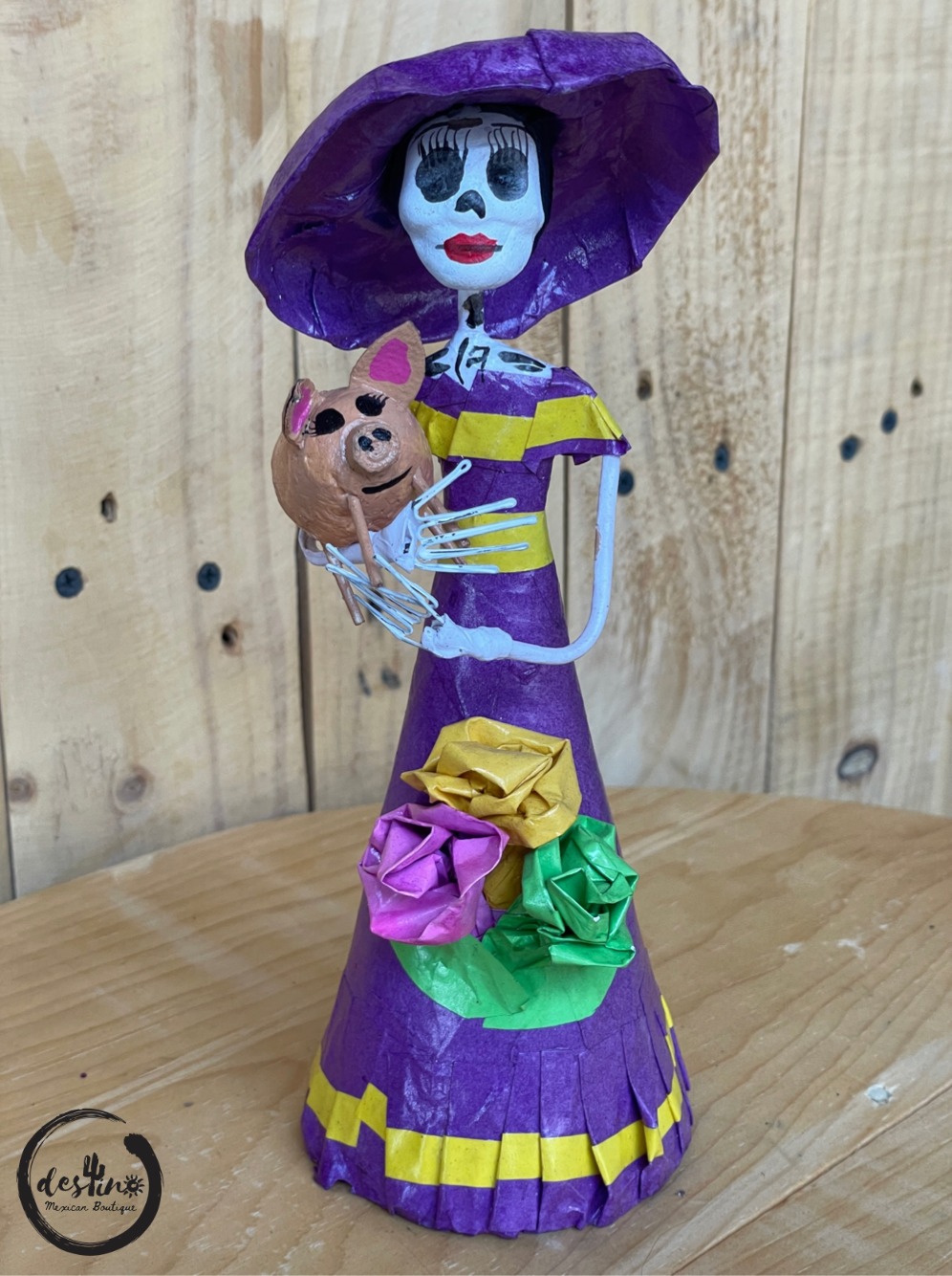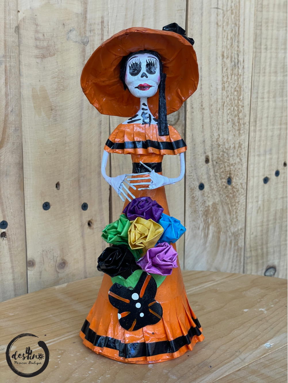 Mexican Catrina 100% handmade with recycled materials. Catrinas represent the beauty of a soul after death. Each Catrina is one of a kind made with love in Tonalá, Jalisco, México.