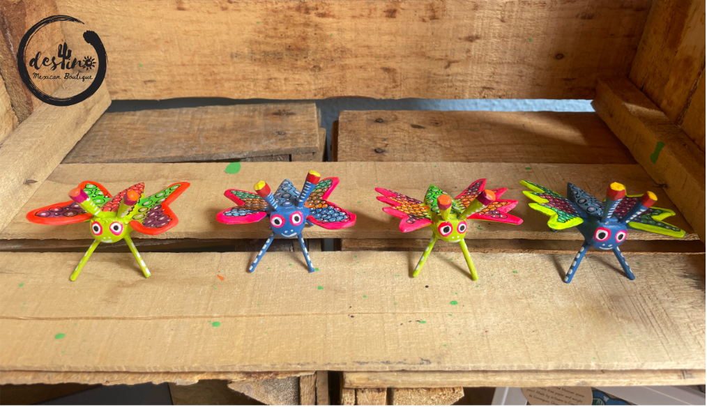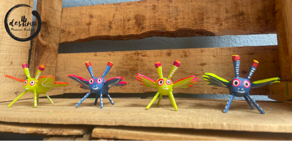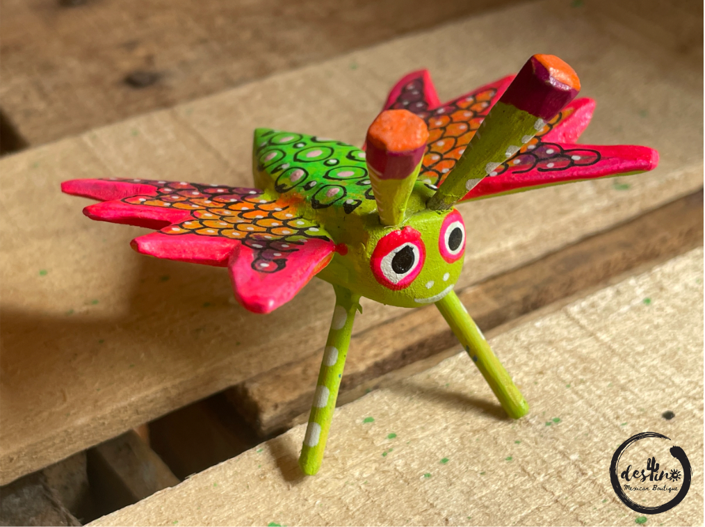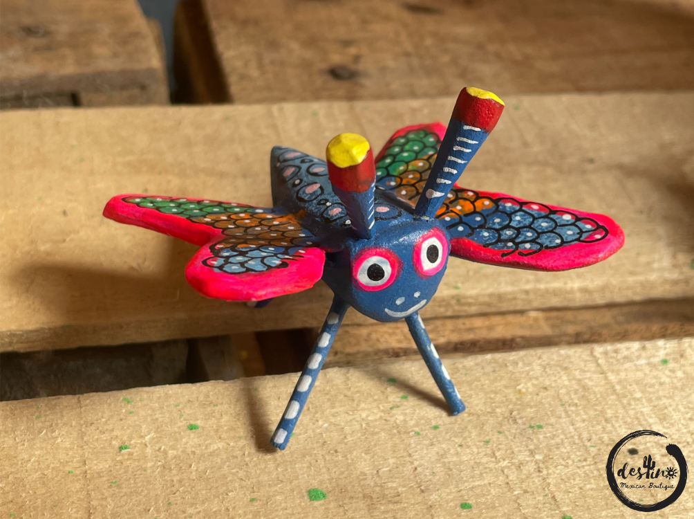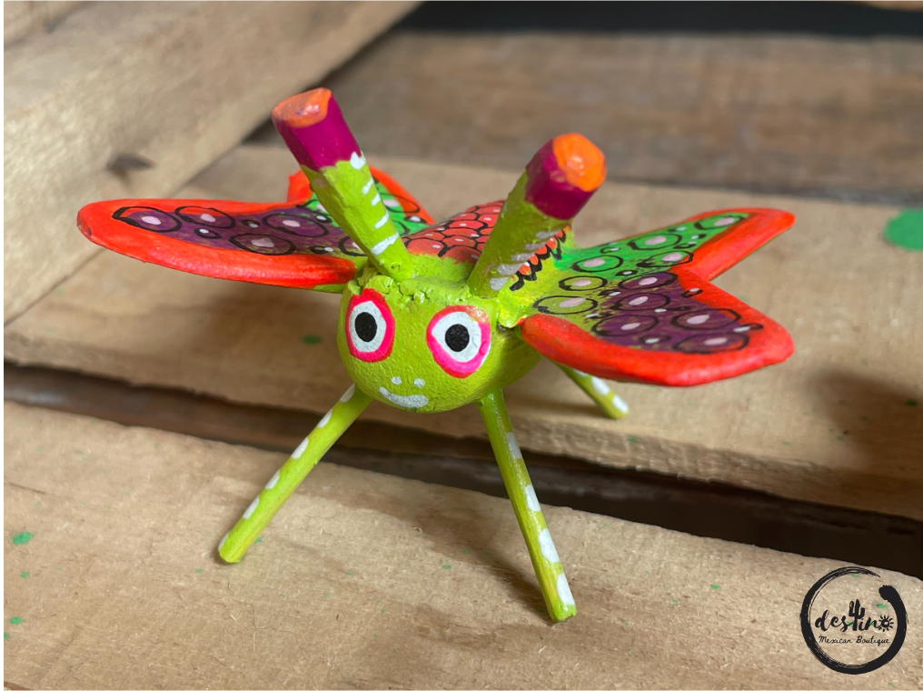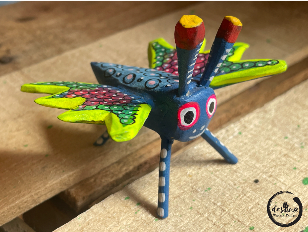 One of a kind hand carved wooden figures done by Mexican Artisans. All alebrijes are hand carved using copal wood which is the region’s natural resource. Each piece is polished and hand painted with acrylic paint by the Melchor family in Oaxaca de Juárez, Oaxaca, México.