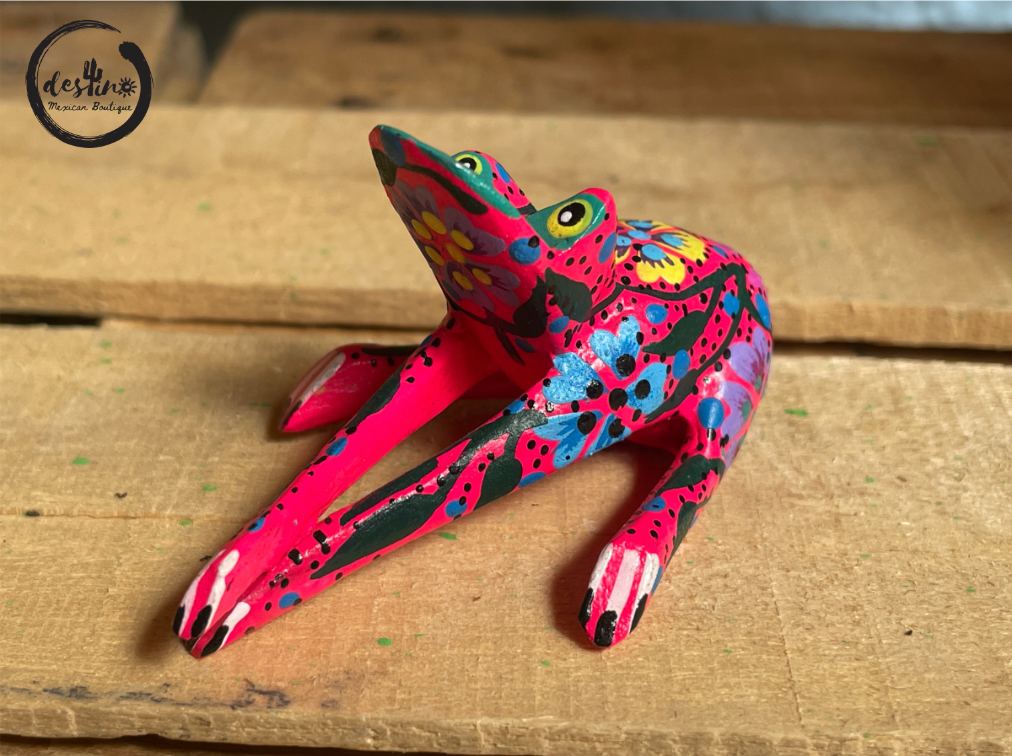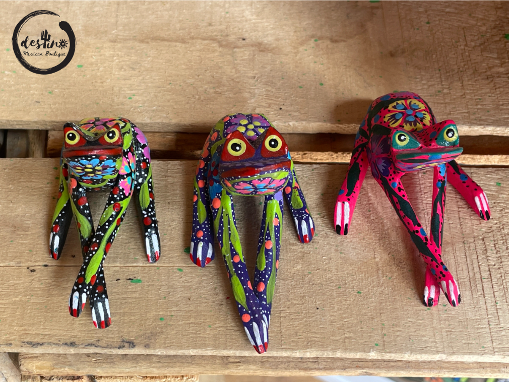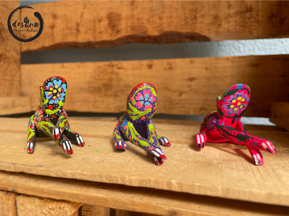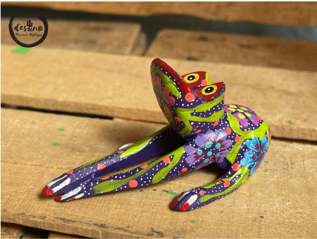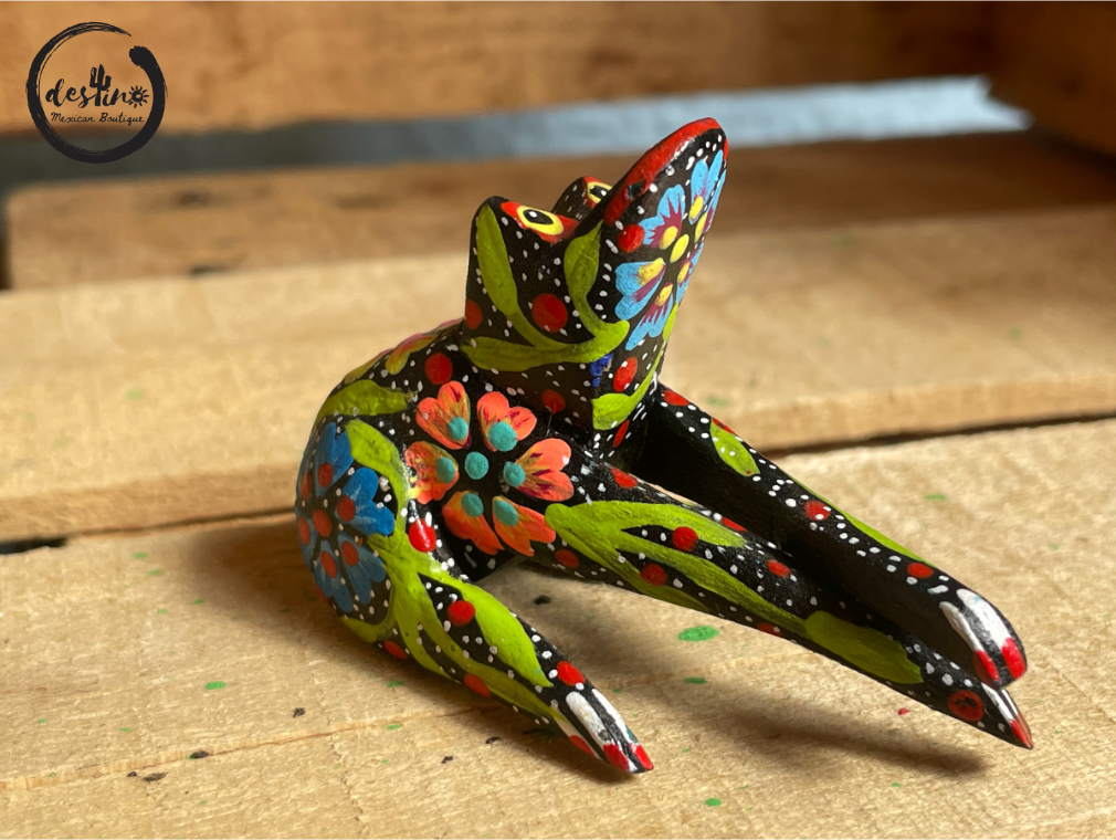 One of a kind hand carved wooden figures done by Mexican Artisans. All alebrijes are hand carved using copal wood which is the region’s natural resource. Each piece is polished and hand painted with acrylic paint by the Melchor family in Oaxaca de Juárez, Oaxaca, México.