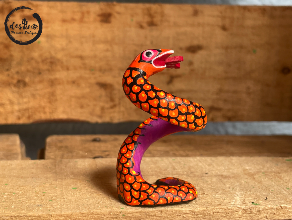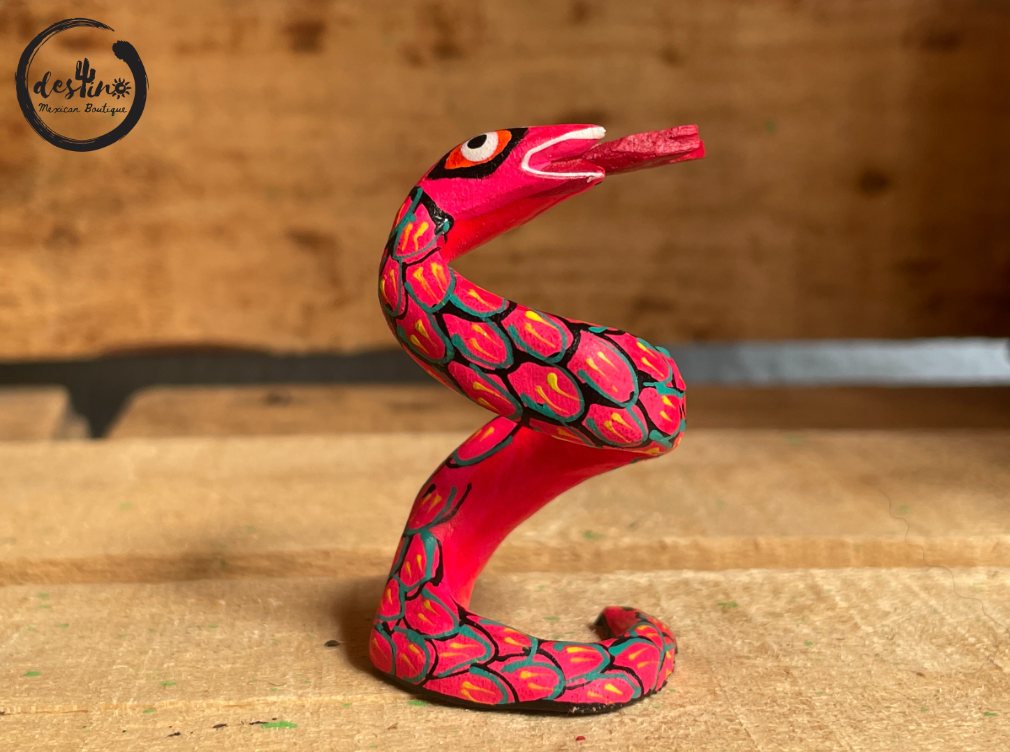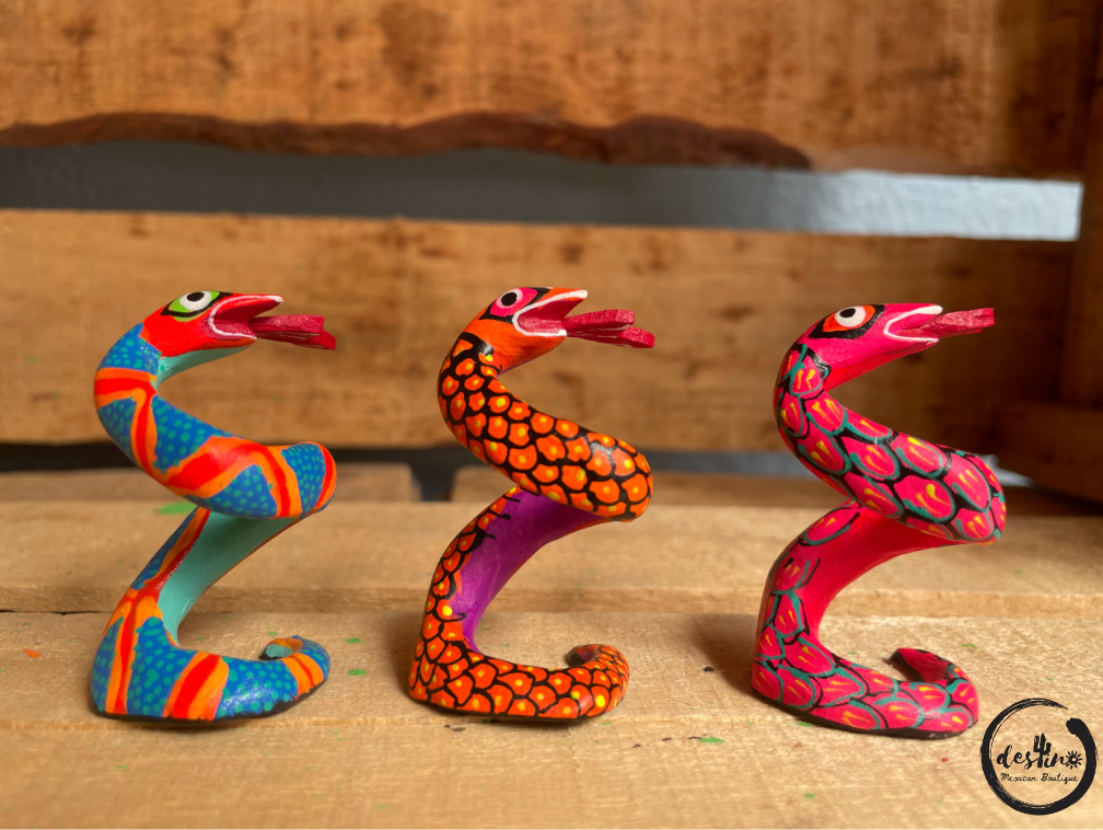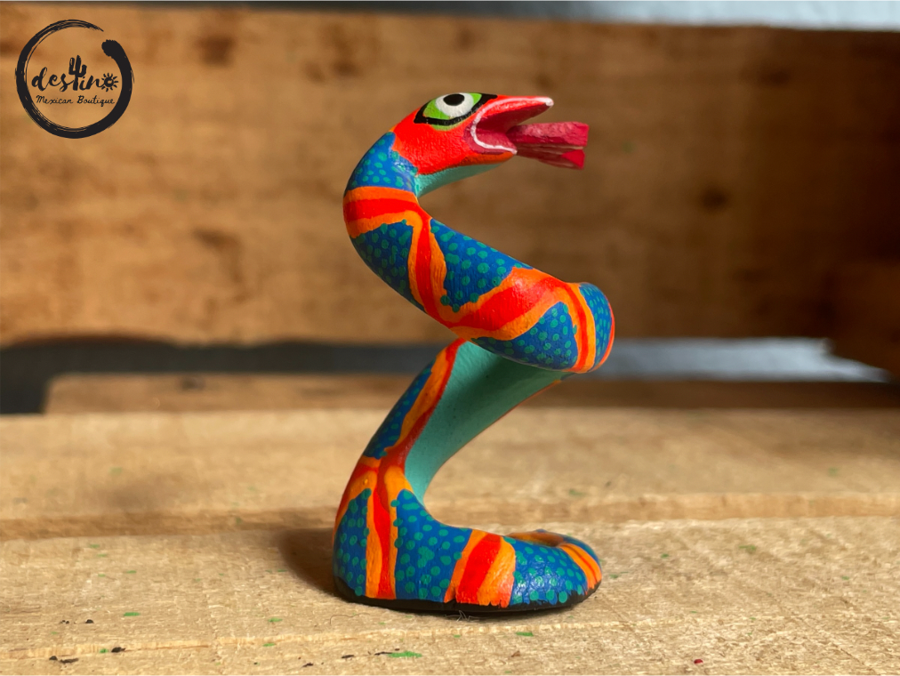 One of a kind hand carved wooden figures done by Mexican Artisans. All alebrijes are hand carved using copal wood which is the region’s natural resource. Each piece is polished and hand painted with acrylic paint by the Melchor family in Oaxaca de Juárez, Oaxaca, México.
